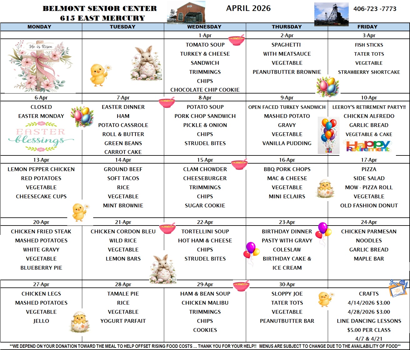 Click “View Menu” above to see the Belmont Senior Center lunch menu for the month or visit our Facebook page to see a daily post detailing the day’s menu.